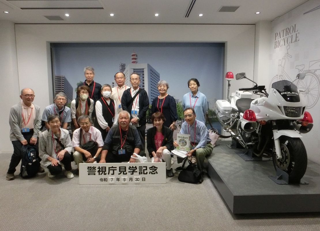 晩秋なのにまだ暑さが残っている一日でしたが、警視庁の「ピーポくん」に会いに大勢の方が参加して下さいました。最初に女性警察官の説明・案内で各施設を見学しました。見学終了後は、付近の農林水産省の食堂で各々昼食をとりました。昼食後は、直ぐ近くの「日比谷公園」内を散策して、からだも心もリラックスしたのち帰途に着きました。
